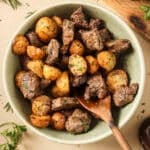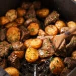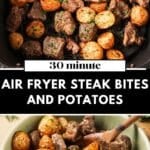 Ready in 30 minutes, this Air Fryer Steak Bites recipe is a complete meal in one dish! It features super juicy steak bites and tender potatoes, seasoned perfectly and cooked all together right in your air fryer.