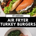 Made from lean ground turkey, air fryer turkey burgers are a lighter version of classic beef burgers that still satisfies all of your burger cravings. With a unique Mediterranean twist, this is a nutritious and satisfying burger recipe that will become a weeknight dinner go-to. You could even use these to create a fun version of my Burger Bowls with a turkey burger twist!