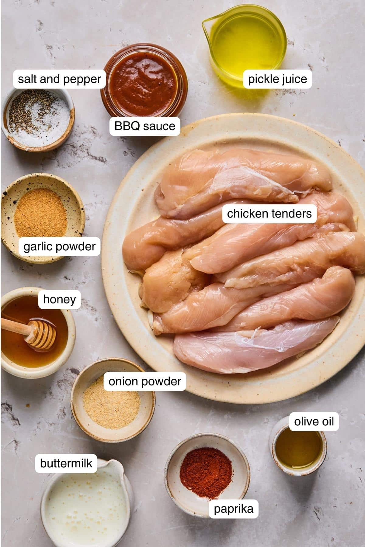 - Brine: Combining pickle juice and buttermilk to brine the chicken tenders tenderizes the meat, enhances flavor, and helps retain moisture for juicy, flavorful tenders.